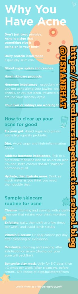 Pimples aren’t simply a skin condition. They’re a signal that something else is going on in your body. Keep asking your doctor, “what caused that?” until you have a handle on the root cause. If you treat acne without treating the source, it won’t go away. Sure, use what makes sense to get your skin looking better, but keep digging for the true reason.